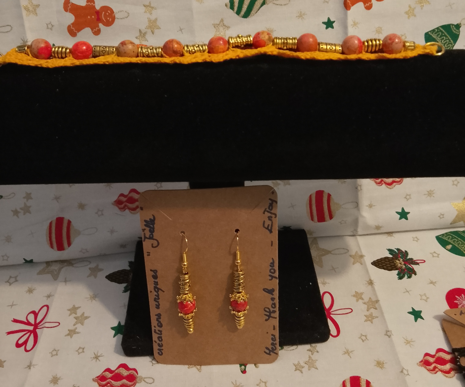 Bracelet coton perlé DMC, orange et jaune, perles oranges en pierre naturelle et perles dorées , artisanat d'art, qualité supérieure. Ce bracelet vous apportera de la chaleur avec ses couleurs chaudes et un brin de fantaisie.